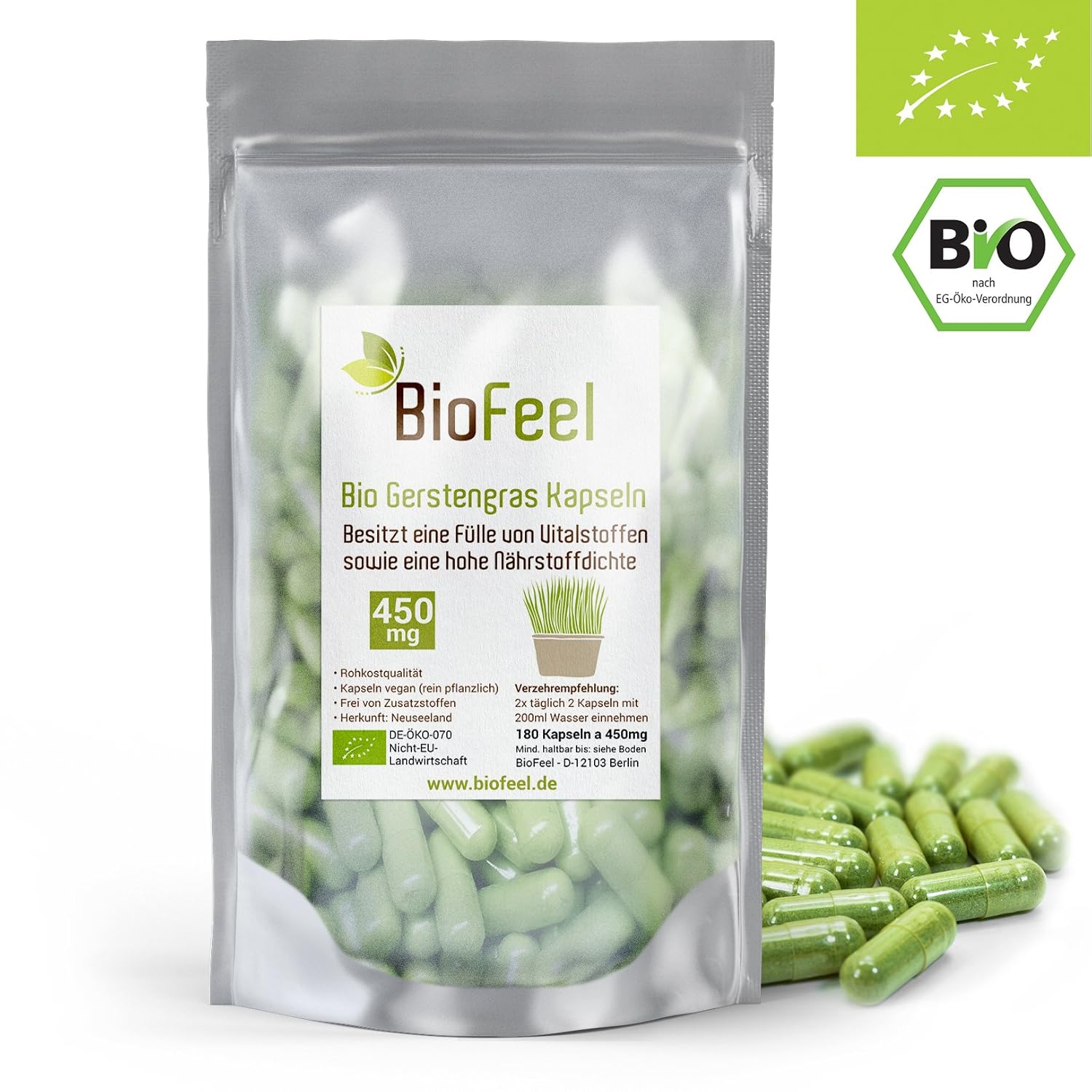 Die besten Vitamine Mineralien & Ergänzungsmittel 2020 , bewertungen, test & preisvergleich , jezt kaufen BioFeel - Bio Gerstengras Kapseln, 180Stk., 450mg - aus NEUSEELAND - rein - vegan - ohne Zusätze wer nicht zu viel Geld ausgeben möchte.