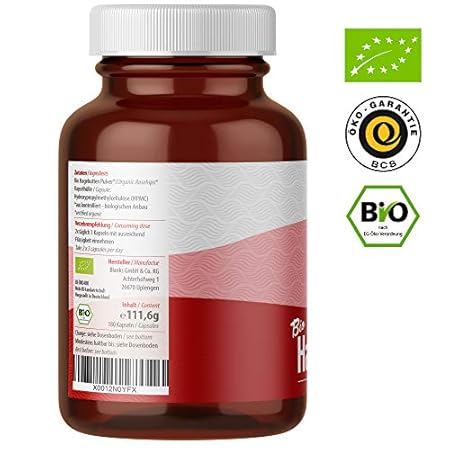 ✈ Beste Test Hagebutten Kapseln hochdosiert Bio - 180 Stück - 500mg reines Hagebuttenpulver pro Kapsel - ohne Zusätze - vegan - laborgeprüft