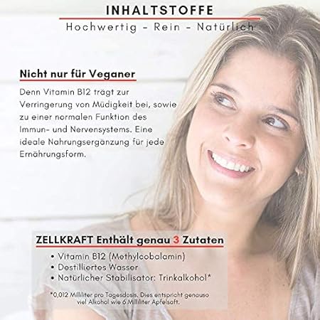 VEGAN UND OHNE ZUSÄTZE: Reines Methylcobalamin in Tropfenform, auch für Veganer und Vegetarier geeignet. Zellkraft ist allergenfrei, ohne Aromen oder Gentechnik, ohne Farb- und Füllstoffe und hergestellt in Deutschland.