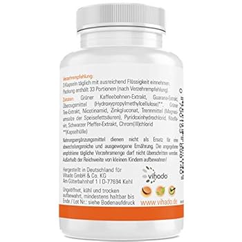 🌿 MULTIKOMPLEX: 9 Wirkstoffe in nur einem Produkt! Neben Grüner Kaffee, Grüner Tee, Guarana, Schwarzer Pfeffer auch Zink, Chrom, Vitamin B2, Niacin und Vitamin B6 enthalten!