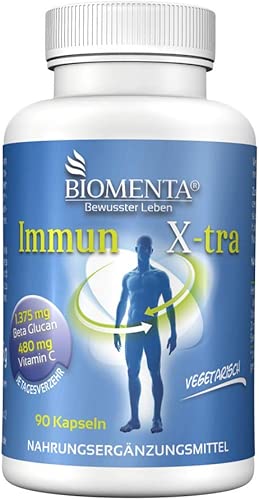 Die besten Vitamine Mineralien & Ergänzungsmittel 2020 , bewertungen, test & preisvergleich , jezt kaufen BIOMENTA IMMUN X-TRA | AKTION!!! | 1.375 mg BETA GLUCAN 1,3 1,6 + VITAMIN C + ZINK + SELEN | 90 vegetarische Beta Glucan Kapseln | Immunsystem stärken wer nicht zu viel Geld ausgeben möchte.