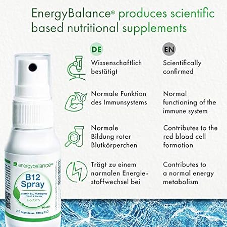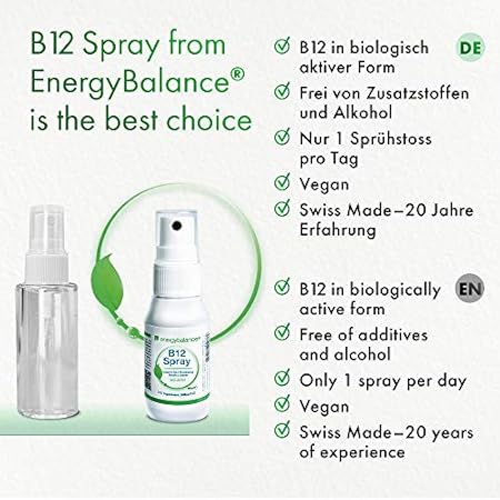Die besten Vitamine Mineralien & Ergänzungsmittel 2020 , bewertungen, test & preisvergleich , jezt kaufen EnergyBalance Vitamin B12 Spray - Vegan Mundspray - Hochdosiert & Zuckerfrei - 500 µg Methylcobalamin pro Sprühstoss - 215 Portionen = 7 Monatsvorrat - Hohe Bioverfügbarkeit – Schweiz - Alkoholfrei wer nicht zu viel Geld ausgeben möchte.