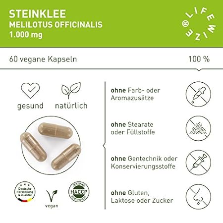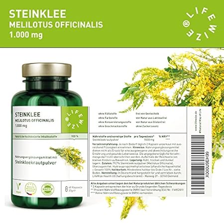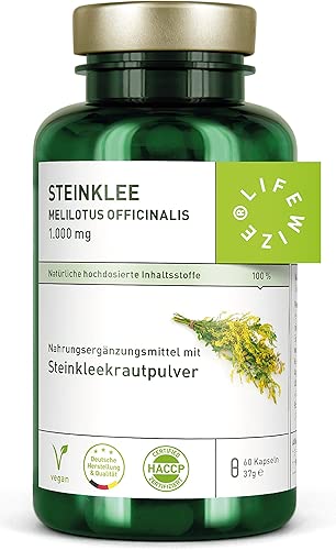 Die besten Vitamine Mineralien & Ergänzungsmittel 2020 , bewertungen, test & preisvergleich , jezt kaufen LifeWize® Steinklee Kapseln - Echter Gelber Steinklee - melilotus officinalis - 60 Kapseln je 500 mg Steinkleekraut - Vegan und ohne Zusatzstoffe wer nicht zu viel Geld ausgeben möchte.