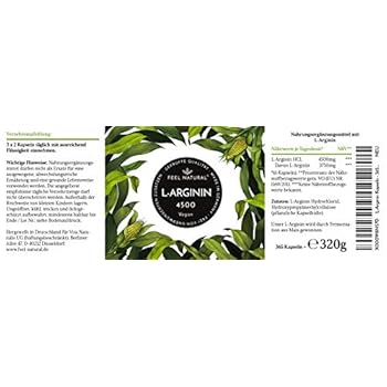 Die besten Vitamine Mineralien & ErgÀnzungsmittel 2020 , bewertungen, test & preisvergleich , jezt kaufen L-Arginin - 365 vegane Kapseln mit 4500mg pflanzlichem L Arginin HCL aus Fermentation (davon 3750mg reines L-Arginin) je Tagesdosis - Ohne ZusÀtze, hochdosiert, vegan, hergestellt in Deutschland wer nicht zu viel Geld ausgeben möchte.
