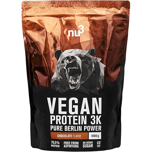 Die besten Vitamine Mineralien & Ergänzungsmittel 2020 , bewertungen, test & preisvergleich , jezt kaufen nu3 Vegan Protein 3K Shake - 1Kg Chocolate Blend - veganes Eiweisspulver aus 3-Komponenten-Protein mit 70% Eiweiss - Pulver zum Muskelaufbau mit Schokoladen Geschmack - Laktosefrei und zuckerfrei wer nicht zu viel Geld ausgeben möchte.